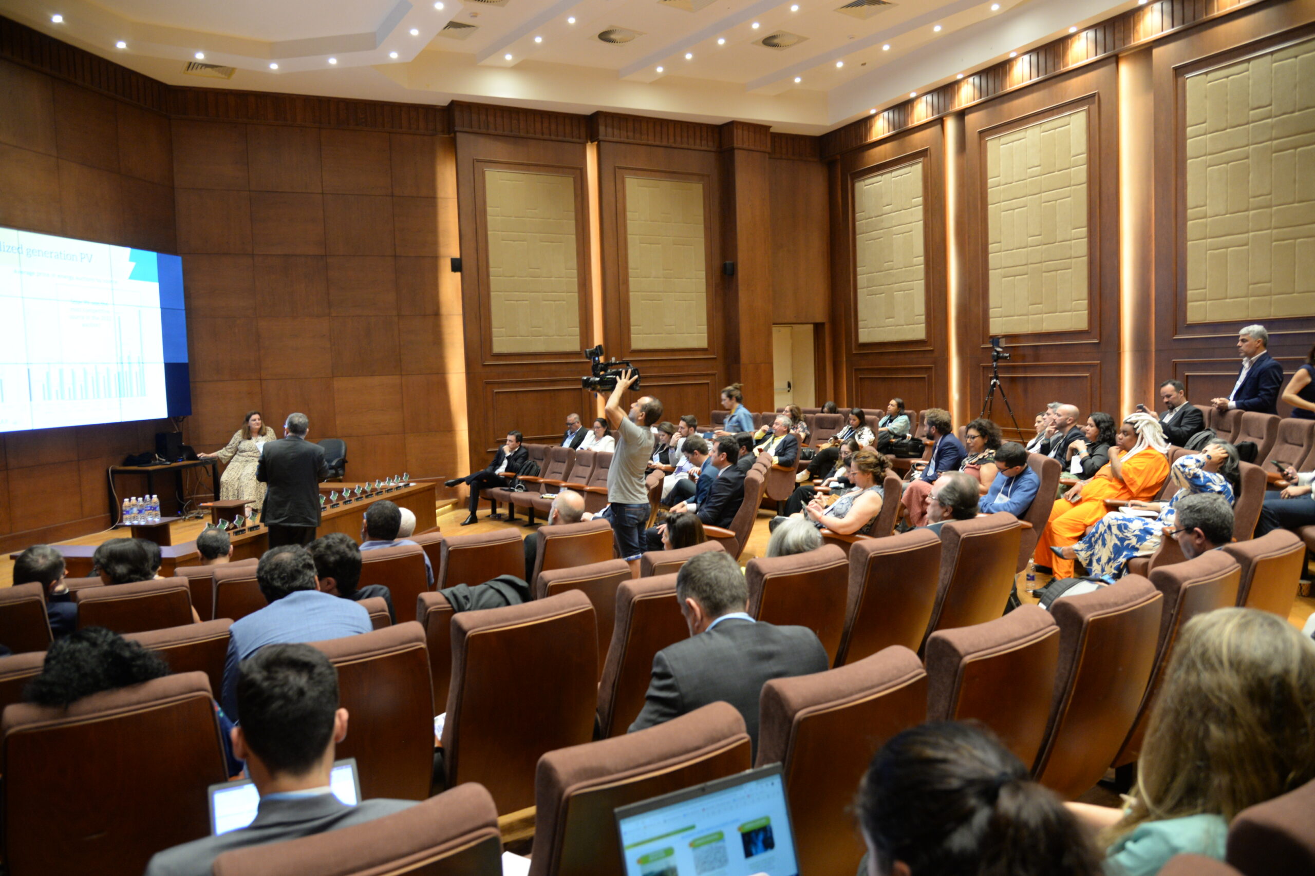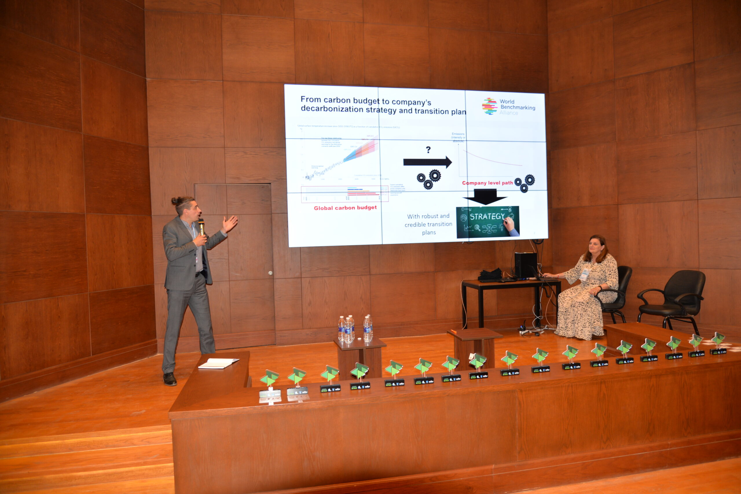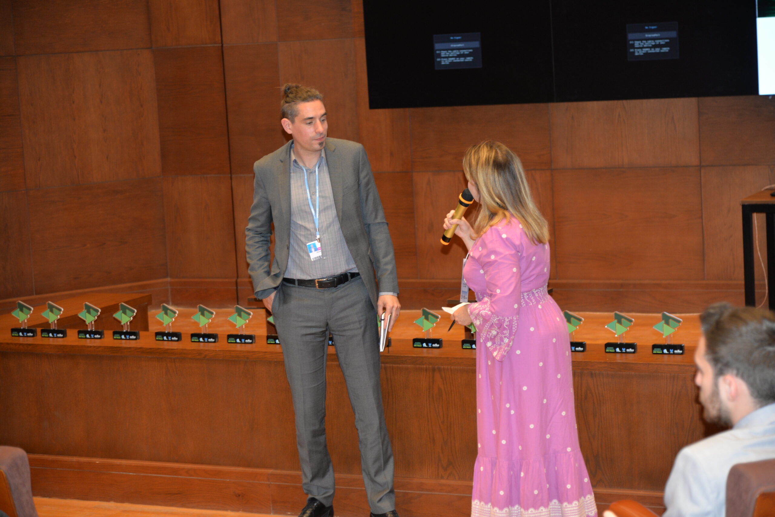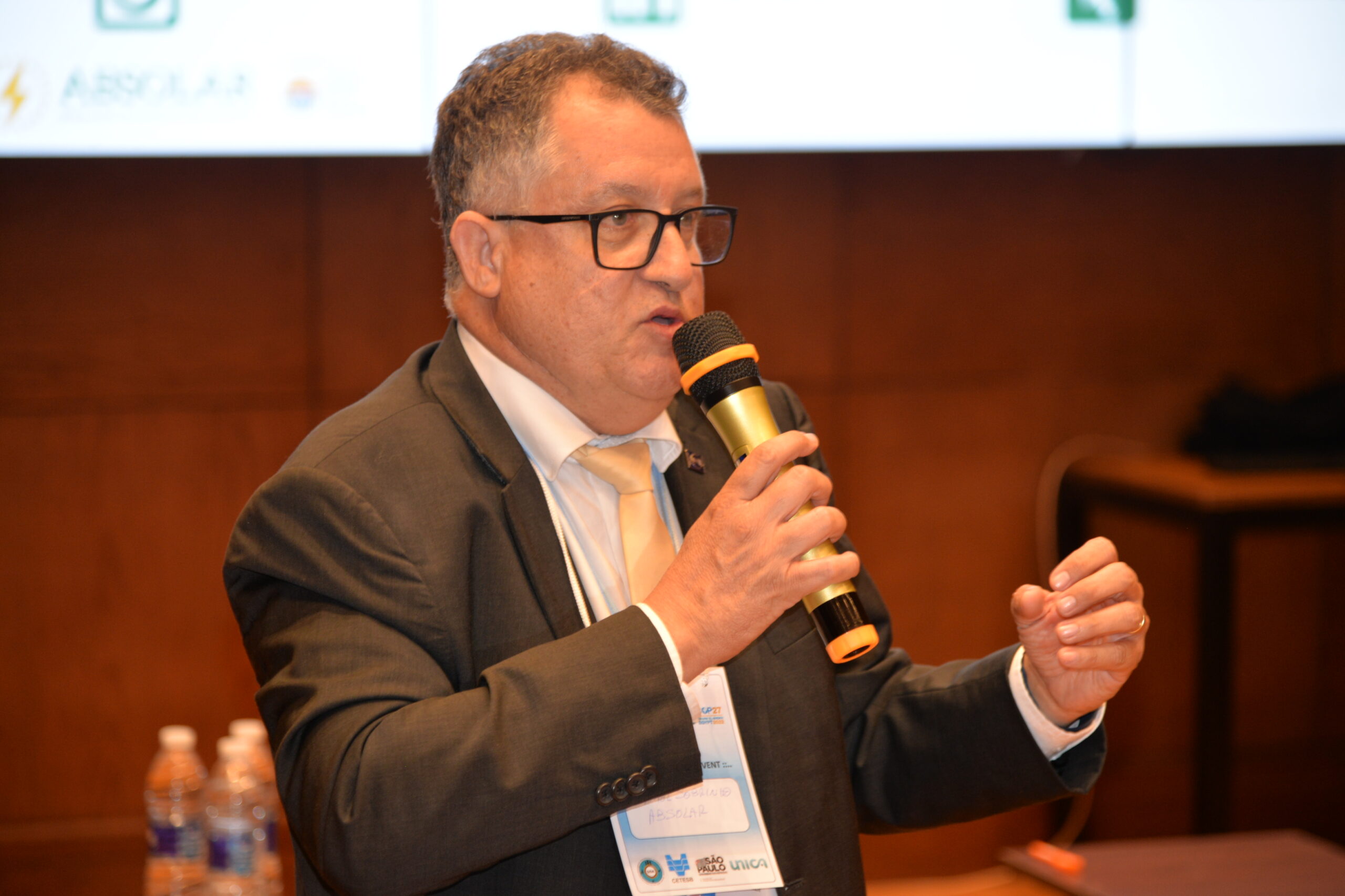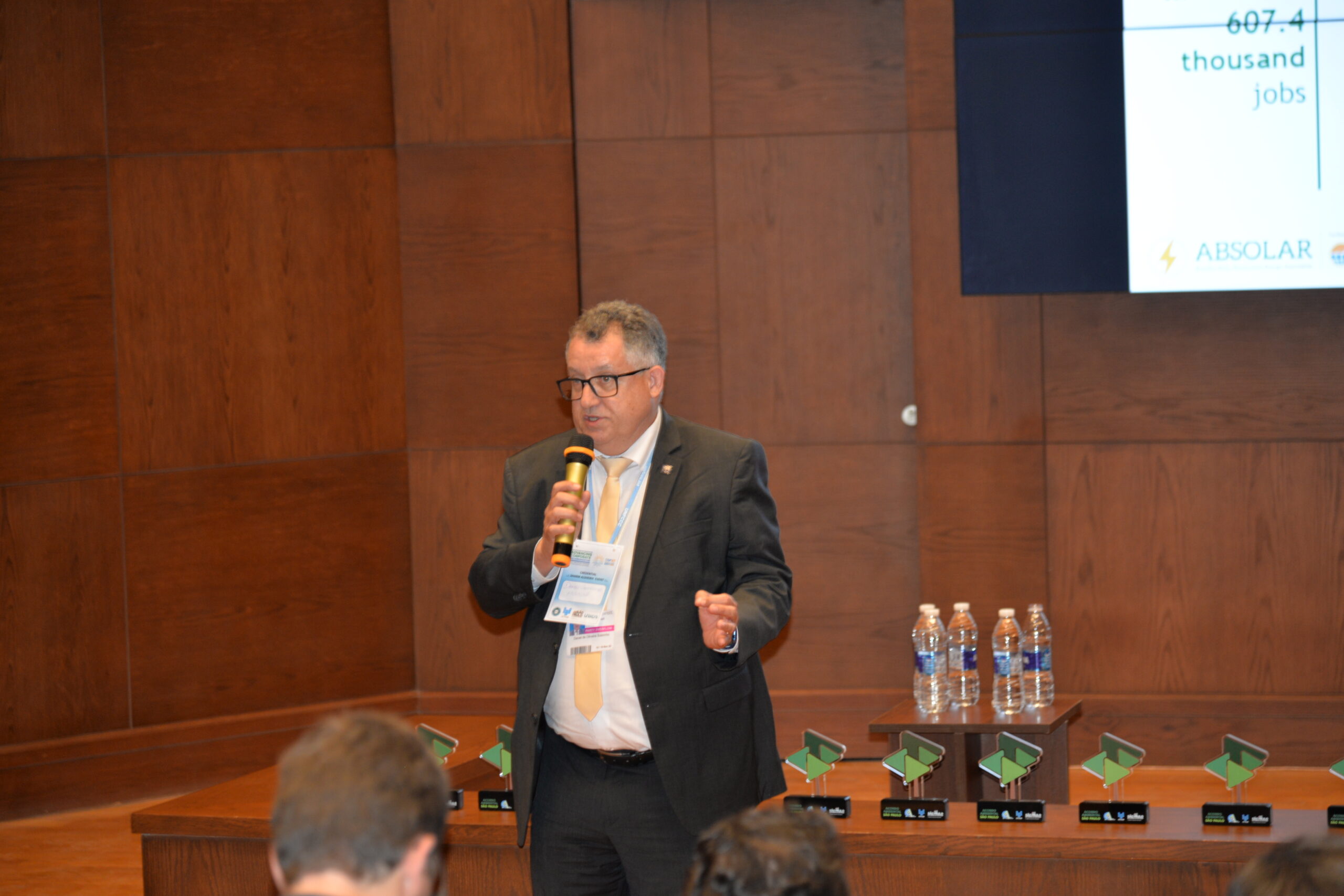 Josilene Ferrer, da CETESB moderou uma mesa que contou com a apresentação de especialistas nas experiências de redução de gases de efeito estufa das seguintes empresas e entidades: Daniel Sobrinho, da Absolar, Plínio Ribeiro da Ambipar, Adriana Mello, da Braskem, Rodolfo Sirol, da CPFL Energia.
