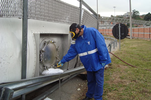- existe a necessidade de proteção respiratória: normalmente o ar possui 20,9% de oxigênio. Assim, se o oxigênio estiver abaixo de 19,5% no ar considera-se o local com deficiência de oxigênio. Dessa forma é necessário a utilização de proteção respiratória especial (por ex. conjunto autônomo de respiração);