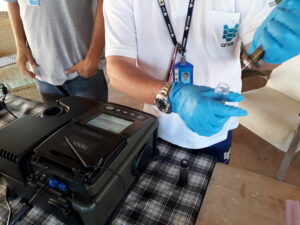 Cromatógrafo gasoso portátil acoplado a espectrômetro de massa para trabalho em campo. Utilizado para detecção e identificação rápida de substâncias orgânicas voláteis e semivoláteis isoladas ou em misturas complexas. Possui biblioteca interna customizável.