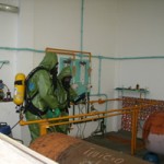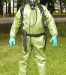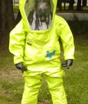 - Descrição e Uso Peça única que encapsula totalmente o usuário. As botas, visor e luvas estão integrados à roupa tornando-a resistente a gases e vapores. As costuras são termoseladas e o zíper também fornece perfeita vedação. A proteção respiratória e o ar respirável são fornecidos por um conjunto autônomo de respiração com pressão positiva, interno à roupa. Alguns modelos protegem também contra chamas ( flasheamentos instantâneos).Utilizada para proteger o usuário contra gases, vapores e partículas tóxicas, bem como contra produtos líquidos, especialmente em condições de risco extremo, com elevadas concentrações de produtos químicos perigosos. O nível de proteção (resistência química) desta veste depende do material utilizado (viton, neoprene, borracha butílica, teflon, borracha nitrílica, poliuretano, polietileno clorado, polietileno de alta densidade, etc.). As roupas mais resistentes são confeccionadas com diversas camadas de materiais diferentes.