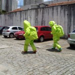 - Descrição e Uso Situações envolvendo incêndio em indústria, armazenamento de produtos químicos, transporte terrestre de produtos perigosos, entre outras, a avaliação dos gases e vapores presentes nas áreas de rescaldo causam uma preocupação adicional àquela onde normalmente uma equipe de atendimento a emergências químicas costuma atuar. Com o objetivo de assegurar a integridade dos técnicos envolvidos em situações como essas, é indispensável a utilização de roupas de proteção térmica que possibilitará a aproximação ao fogo ou chamas, oferecendo também resistência a respingos de produtos químicos. Roupa de proteção e combate a incêndio combinando três peças, jaqueta, calça e capacete. A confecção da jaqueta e calça é composta de 4 camadas de proteção, sendo: 1ª camada – externa brigade 08 gr/m2, 2ª camada – barreira de vapor em poliuretano, 3ª camada – barreira térmica de feltro em fibra aramida, 4ª camada – forro em fibra aramida. A forração de proteção térmica possui ainda uma camada de tecido sintético, que promove a dissipação do calor interno, mas não permite a entrada de água (efeito hidrorepelente), ou passagem de calor no sentido inverso. A jaqueta possui um fechamento frontal duplo com zíper e velcro reforçados, mangas tipo raglã, gola alta forrada e fecho em velcro para a proteção do pescoço, punho com fole interno em malha de aramida com tira para fixação do polegar, bolsos externos com tampas, fechamento em velcro e abertura inferior para drenagem, faixas refletivas antichamas na cor amarelo-limão. A calça possui forro fixo, sem braguilha e com elástico na parte traseira da cintura, suspensórios, faixas refletivas antichamas na cor amarelo-limão e prata na barra. O capacete com desenho específico para situações de combate à incêndios e atividades de resgate. Possui casco especial de altíssima resistência a impactos, confeccionado em material sintético especial . Possui forração interna especial confeccionada em “Styropox” (resina epóxi expandida) de alta capacidade de absorção de impactos. Não absorve água, apresenta excelente rigidez e construção dielétrica. Possui sistema de carneira que distribui o peso do capacete por toda a cabeça do usuário, com regulagem por catraca de fácil operação, visor de policarbonato de alta resistência a impactos. Desenho padrão com quebra telha. O uso da roupa de proteção térmica poderá estar associada a um equipamento de proteção respiratória, tais como máscara panorama com filtro combinado ou equipamento autônomo de respiração.