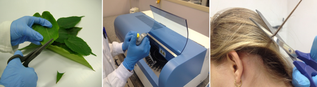 Sangue, cabelo, tecido muscular e leite materno: análise de metais pesados, como chumbo, cádmio, mercúrio e níquel, especiação de metais, como metilmercúrio, além de poluentes orgânicos persistentes (POPs da Convenção de Estocolmo) em sangue humano e animal, leite materno, tecido muscular e vísceras de animais, para avaliação da exposição recente a contaminantes ambientais.