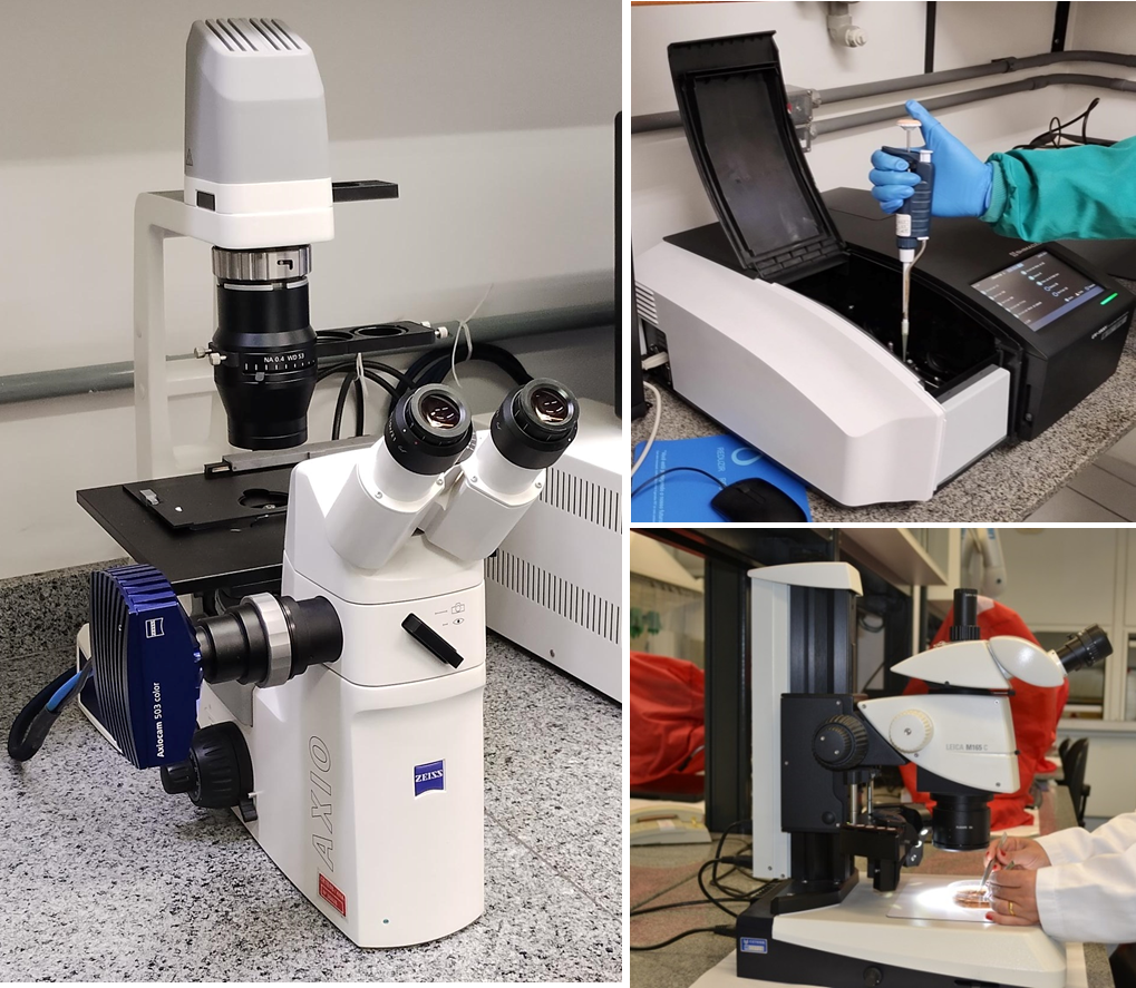 Espectrofotômetro; Microscópios biológicos; Microscópios invertidos com sistema de epifluorescência; Estereomicroscópios e estereomacroscópio (Lupa) inclusive com sistema de co-observação, e Capturadores de imagens para visualização de algas e cianobactérias, macroinvertebrados bentônicos e zooplâncton.