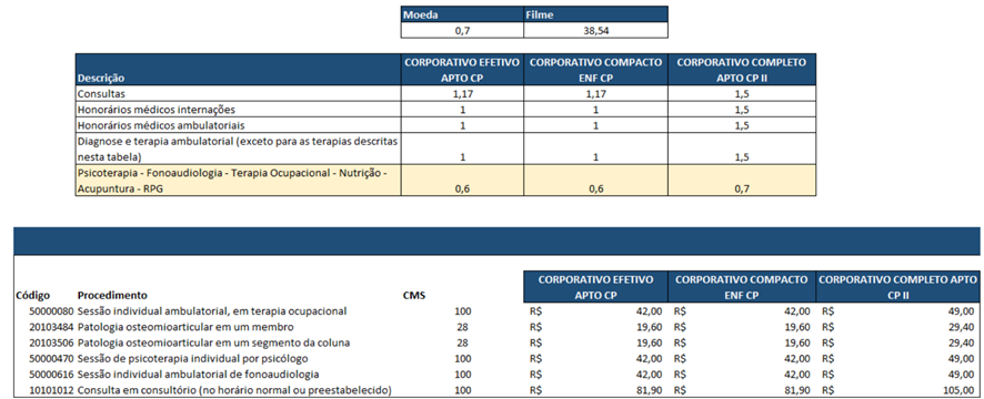 Seguem exemplos de reembolso por plano para consultas e tratamentos seriados, tal como a psicologia: