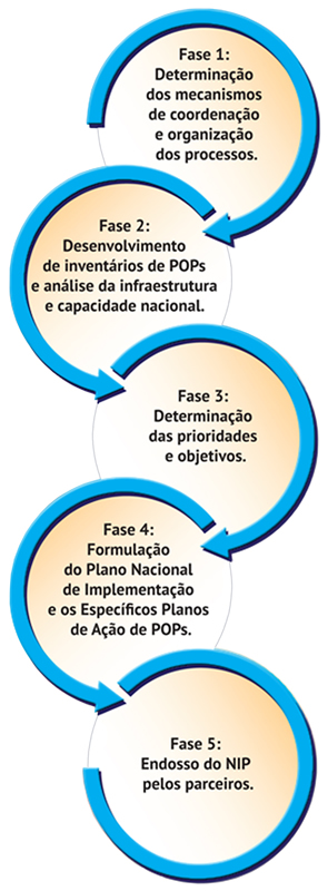 A elaboração do NIP deve seguir os critérios e as orientações do Guidance for Developing, a National Implementation Plan for the Stockholm Convention on Persistent Organic Pollutants (Orientação para o desenvolvimento, o Plano Nacional de Implementação da Convenção de Estocolmo sobre poluentes orgânicos persistentes, em tradução livre) que apresenta cinco fases para o processo.