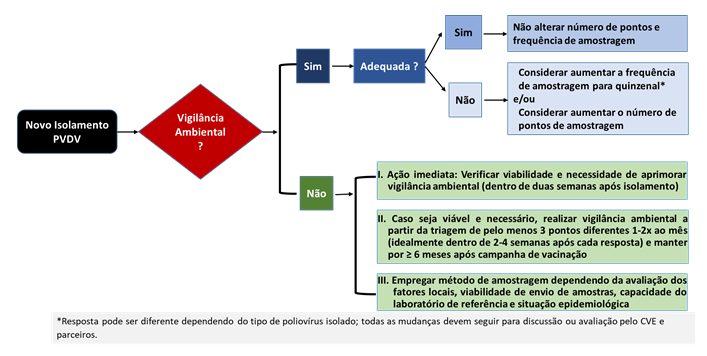 Na ocorrência de um isolamento de um poliovírus (selvagem, derivado da vacina ou Sabin tipo 2) em amostra ambiental, a CETESB deverá seguir as orientações previstas no Plano Estadual de Resposta a um Evento de Detecção de Poliovírus em um Surto de Poliomielite: Estratégia São Paulo.