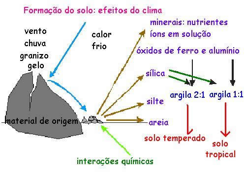 As propriedades físicas, químicas e biológicas do solo são determinadas pelo processo geológico de sua formação, origem dos minerais, e sua evolução de acordo com o clima e o relevo do local, além dos organismos vivos que o habitam.