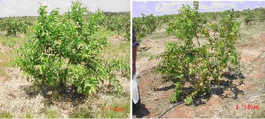 PAN – Nas folhas produz um colapso na camada de células mesofílicas principalmente junto aos estômatos. O colapso total e necrose dos tecidos fo1iares ocorrem quando plantas suscetíveis são expostas a altas concentrações de PAN.